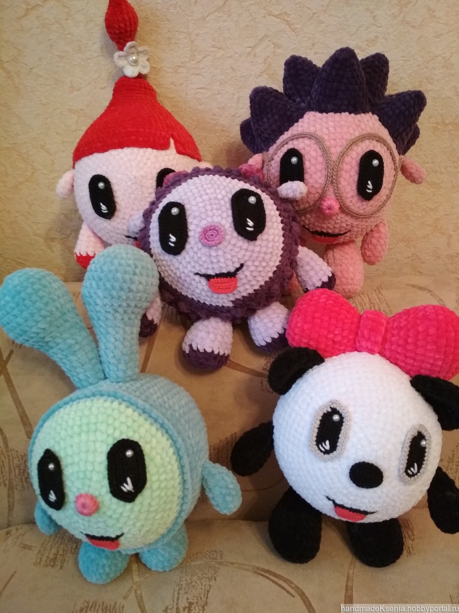 Герои мультфильма малышарики. Выполнены из плюшевой пряжи