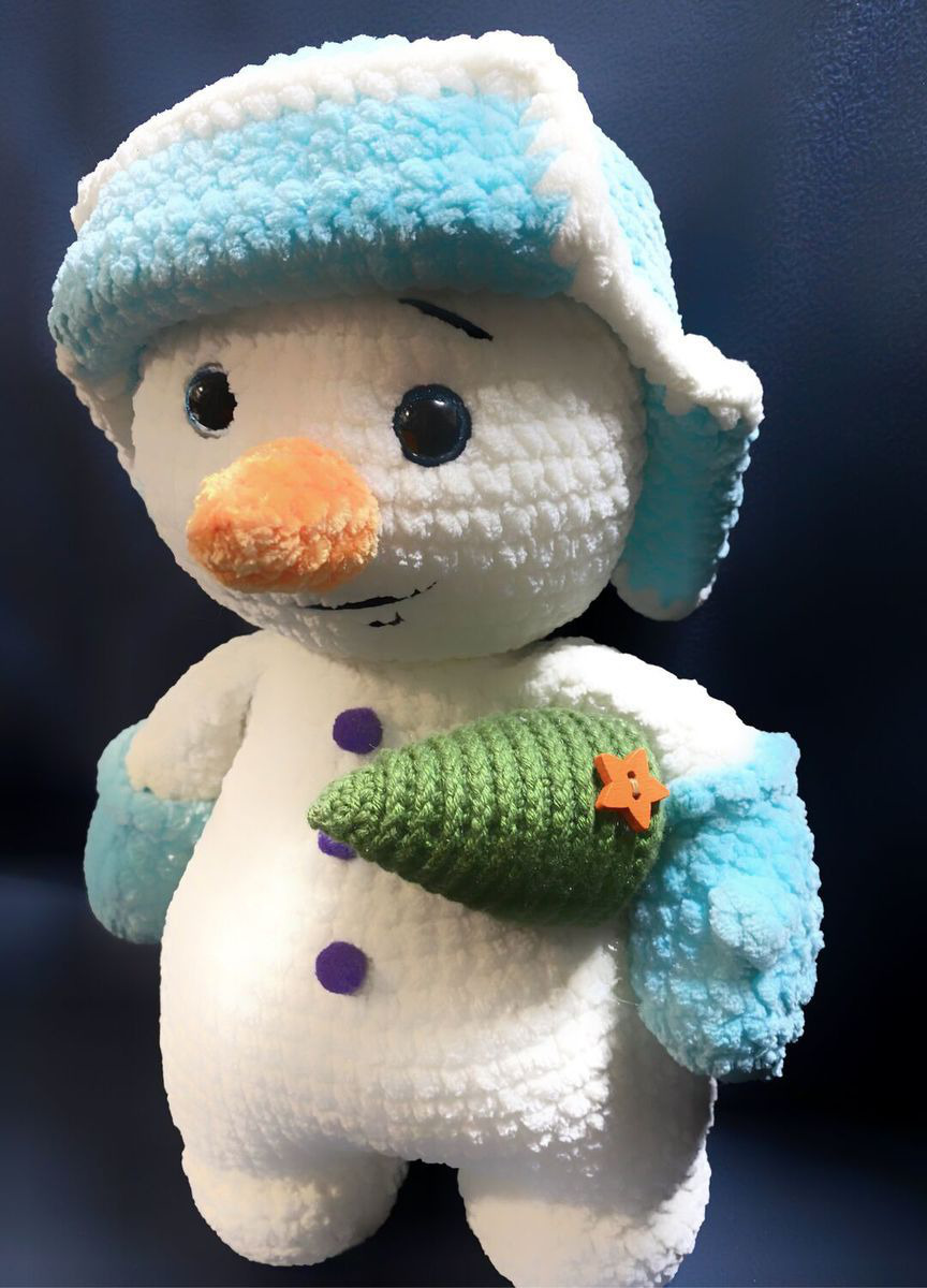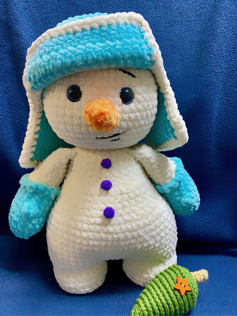 снеговик ручной работы, новогодний сувенир, новогодний декор, снеговик крючком