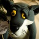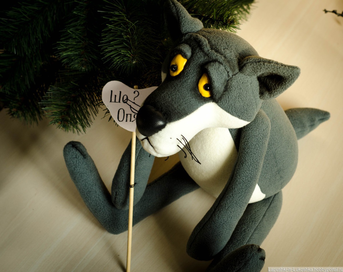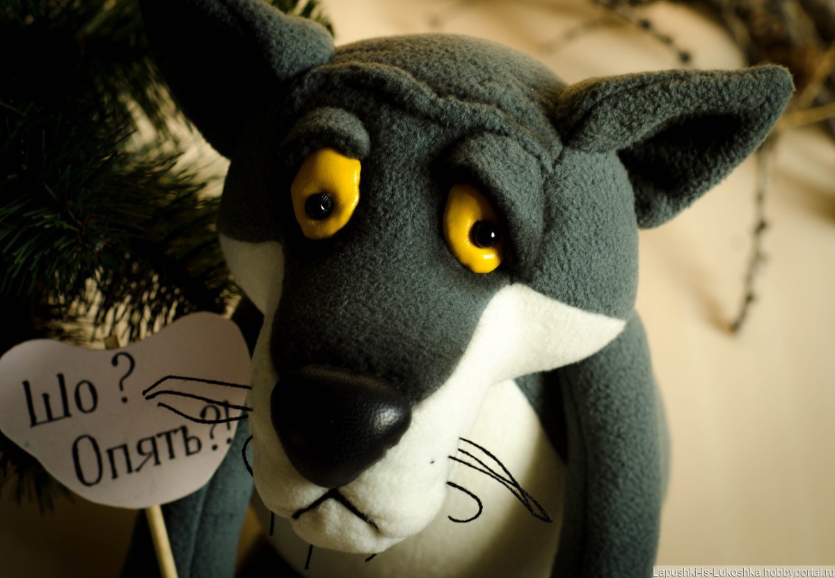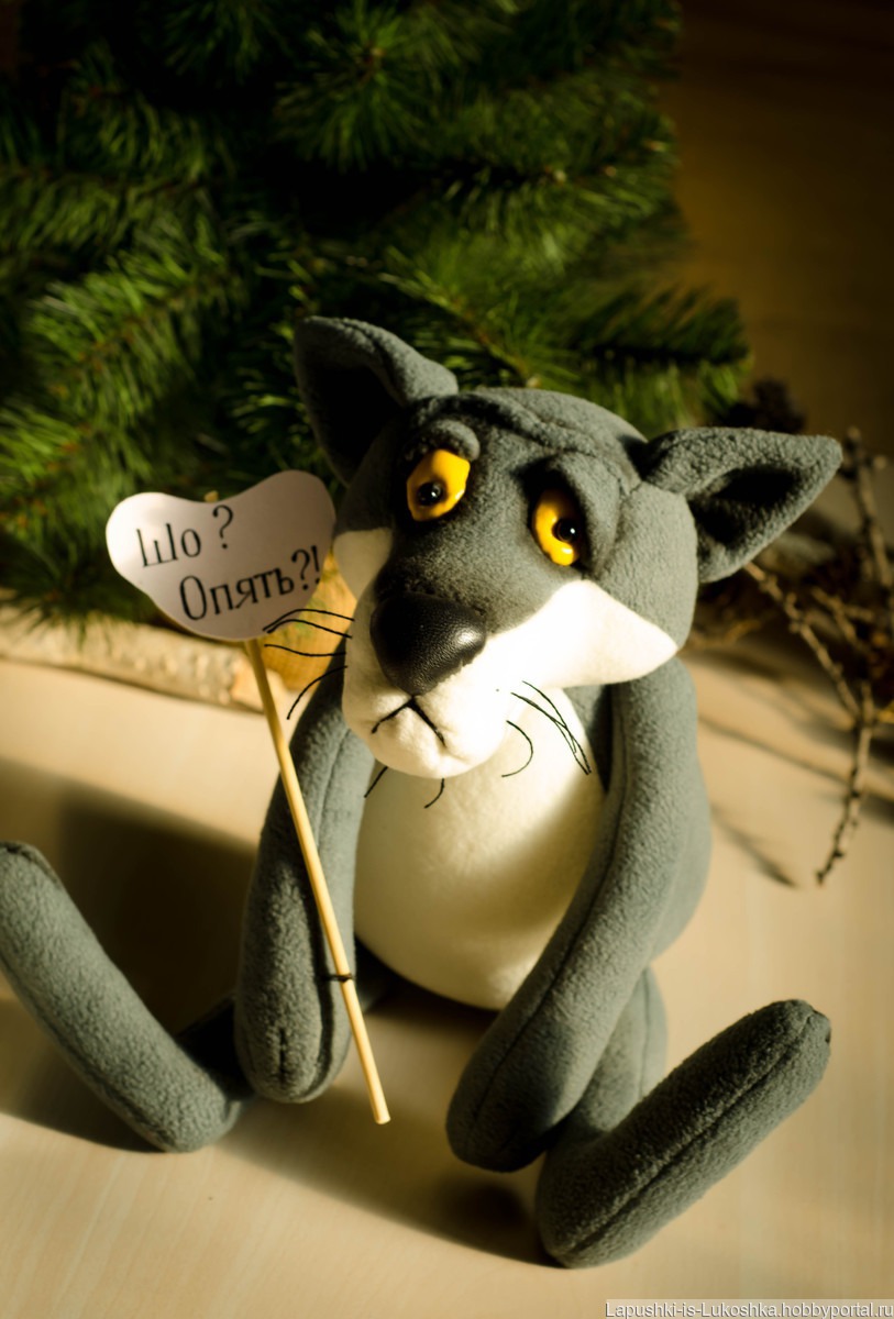выполнен из флиса, лапы на внутренних пуговичных креплениях, в верхних- проволока, носик из кожи, глаза из лакированной ткани, мордочка чуть затонирована