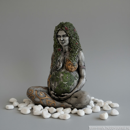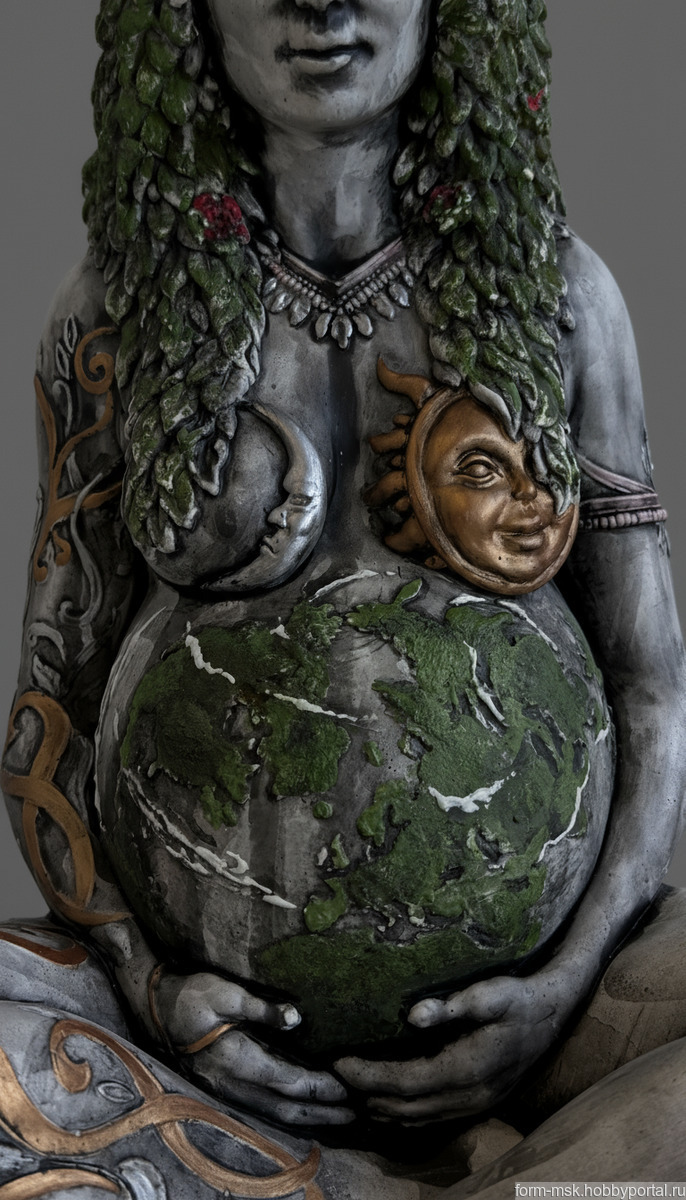 Эта статуэтка — не просто изображение богини, а живое воплощение природы. Гайя, праматерь всего сущего, предстает перед вами в своем истинном облике, чтобы наполнить ваш дом энергией плодородия, стабильности и бесконечной жизненной силы.