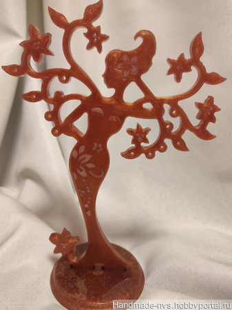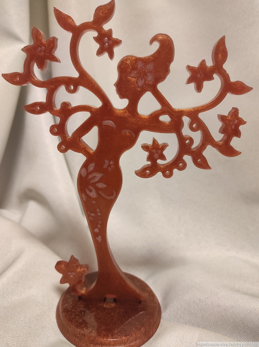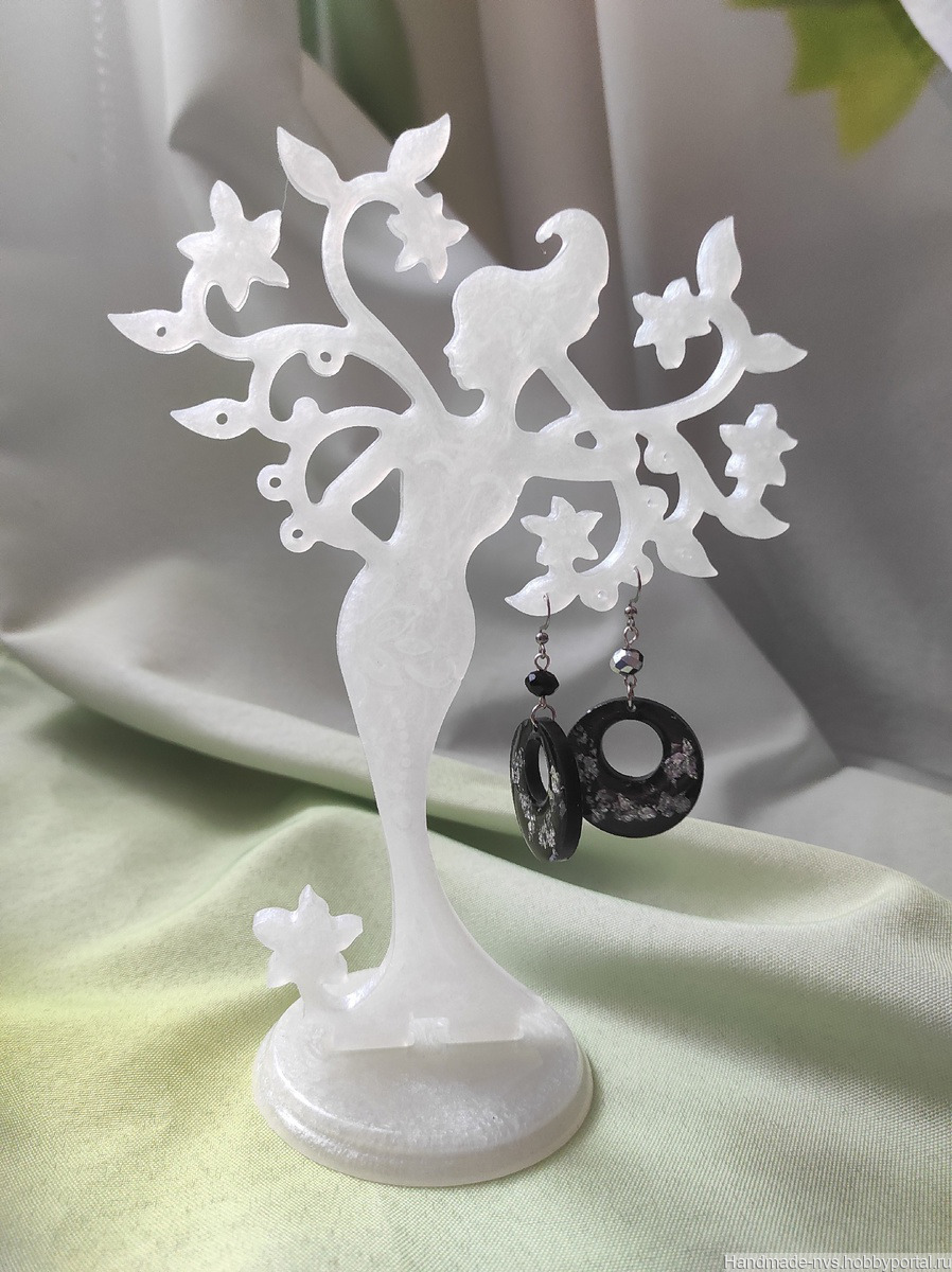Подставка или вешалка для украшений Дева выполнена из эпоксидной смолы с красителями. При покупке данного изделия серьги со швензами, покрытыми медицинским сплавом, в подарок.