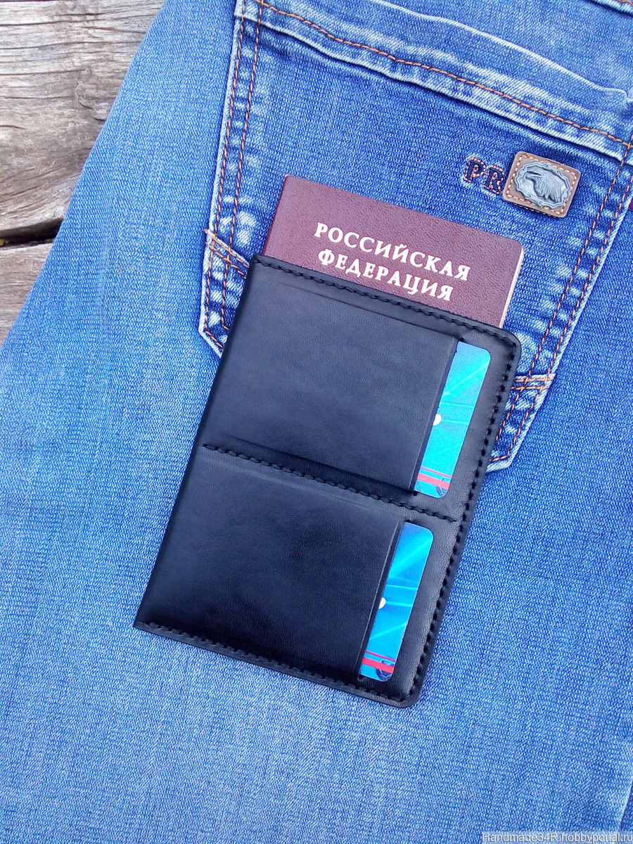 Два отделения для пластиковых карт. Отсек для карты Снилс и СТС. Отделение для водительского удостоверения. Все документы сидят достаточно плотно и в процессе пользования, ничего не выпадает и не потеряется, проверено временем на личном опыте! Возможно изготовление в другом цвете кожи и цвет нити по желанию.