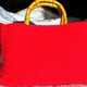 Вязанная повседневная красная сумка "Искра" с бамбуковыми ручками выполнена из трикотажной пряжи. Размеры: ширина 35 см, высота 20 см, ширина донышка 8 см.