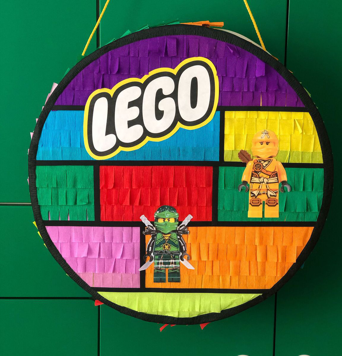 Пиньята Лего в форме шайбы Есть дверца для добавления сладостей Конфетти включены Бита в цвет пиньяты - 200