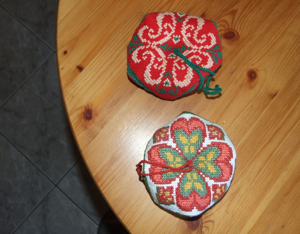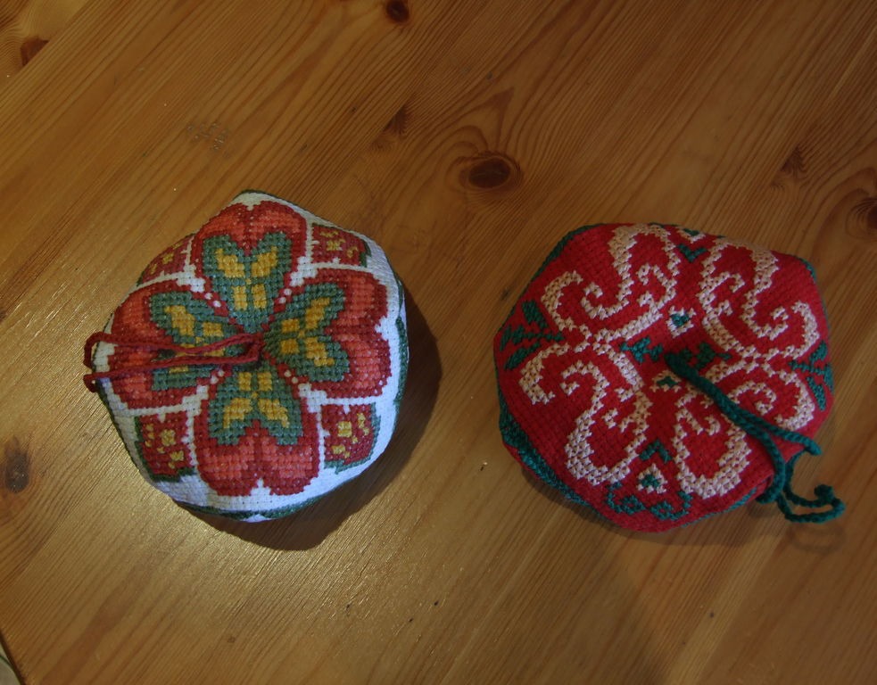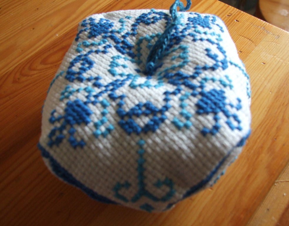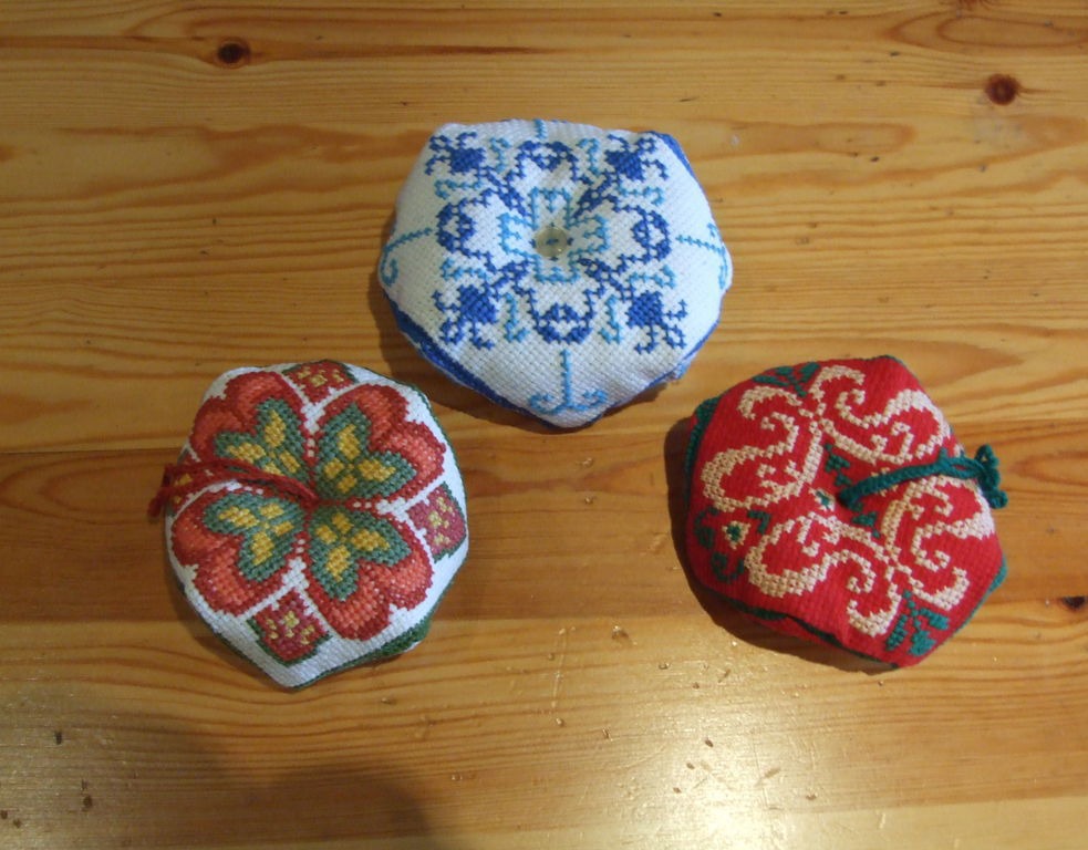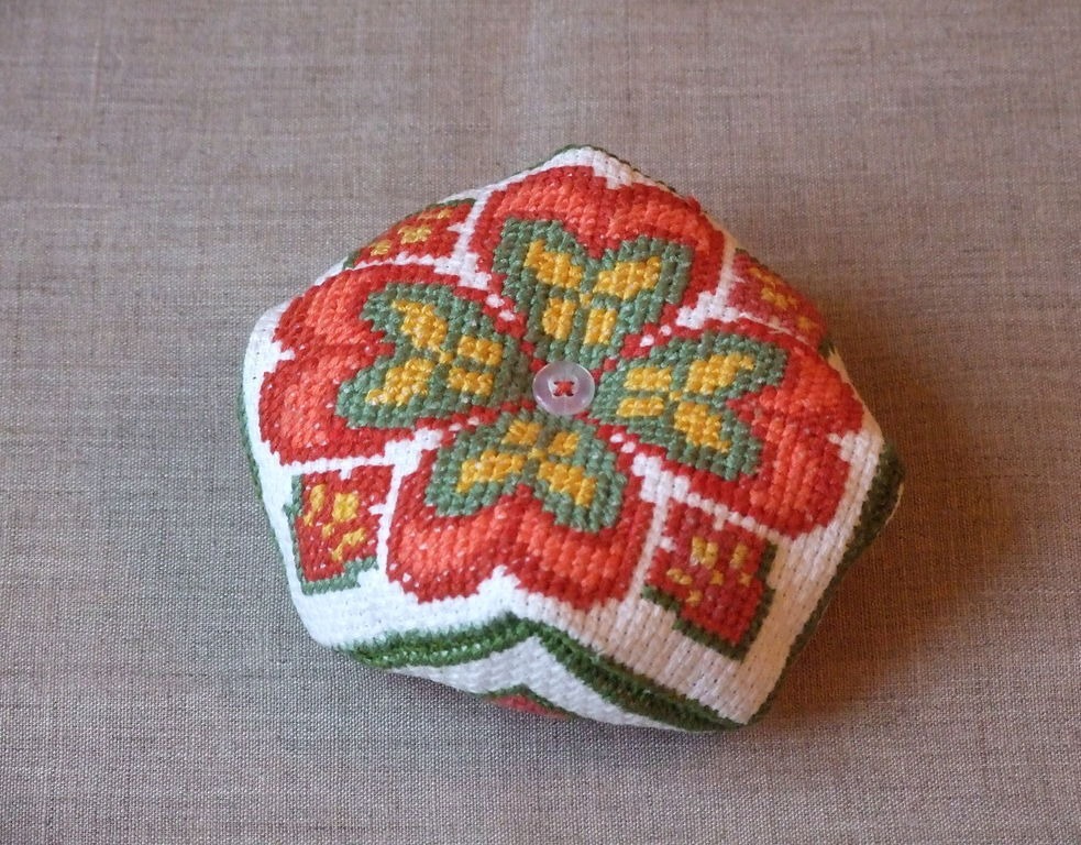 Подушечка бискорню. Вышивка крестиком, ручная работа. Можно использовать в качестве игольницы . Вышивка двухсторонняя.В наличии 3шт.Цена указана за 1 подушку.При покупке. 2-х шт.цнна 700руб.(2 шт