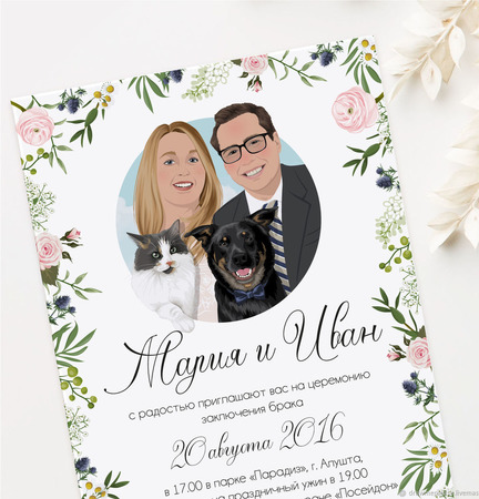 Приглашения на свадьбу с портретами жениха и невесты - эксклюзивная работа, выполненная специально для вашей пары. Они станут памятным сувениром для вас и ваших гостей.