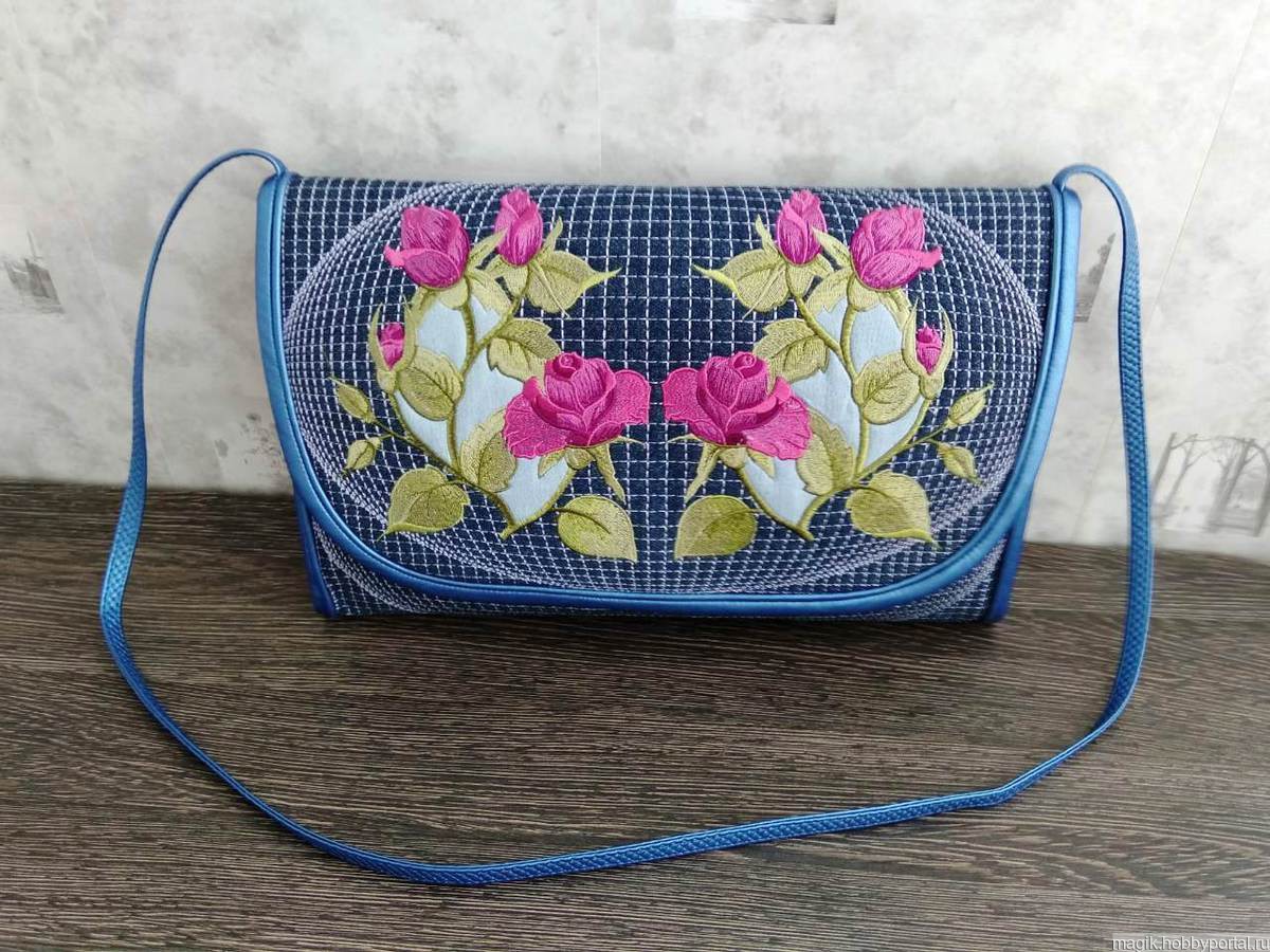 Сумочка выполнена из ткани "джинс" с вышивкой, окантовка и ручка их эко-кожа (производство италия) подкладик выполнен из атласа, простеган.