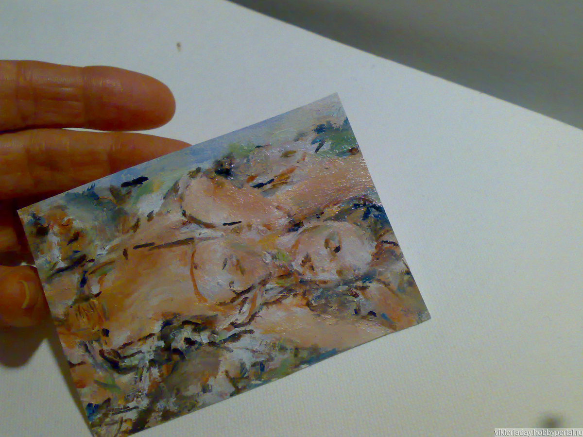 6.4см Х 8.9см - очень маленькая, миниатюрная живопись подарочная коллекционная.