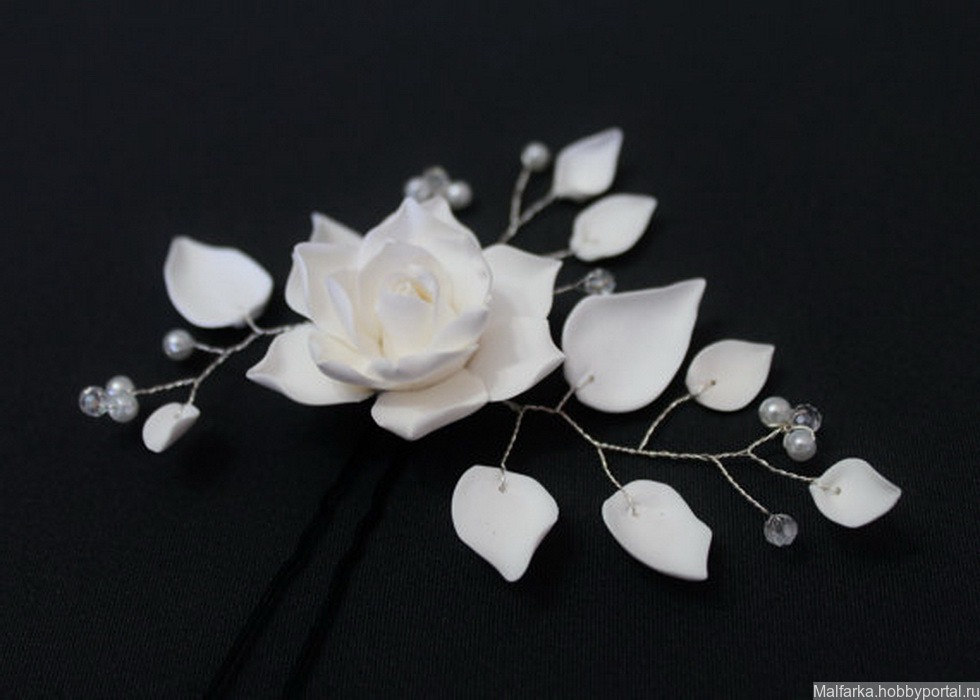 Нарядная свадебная шпилька с жемчугом и цветком из полимерного бельгийского пластика