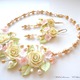 купить колье, свадебное украшение, колье ручной работы, комбинированный, колье и серьги, колье с розами, колье из жемчуга, свадебное колье, серьги с розами, колье с цветами, свадебные серьги