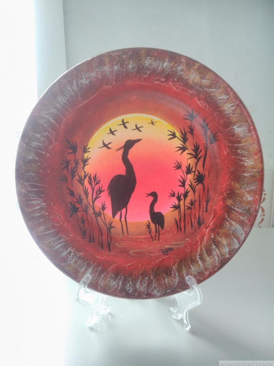 Декоративная тарелка   "Цапля" ручной работы на заказ