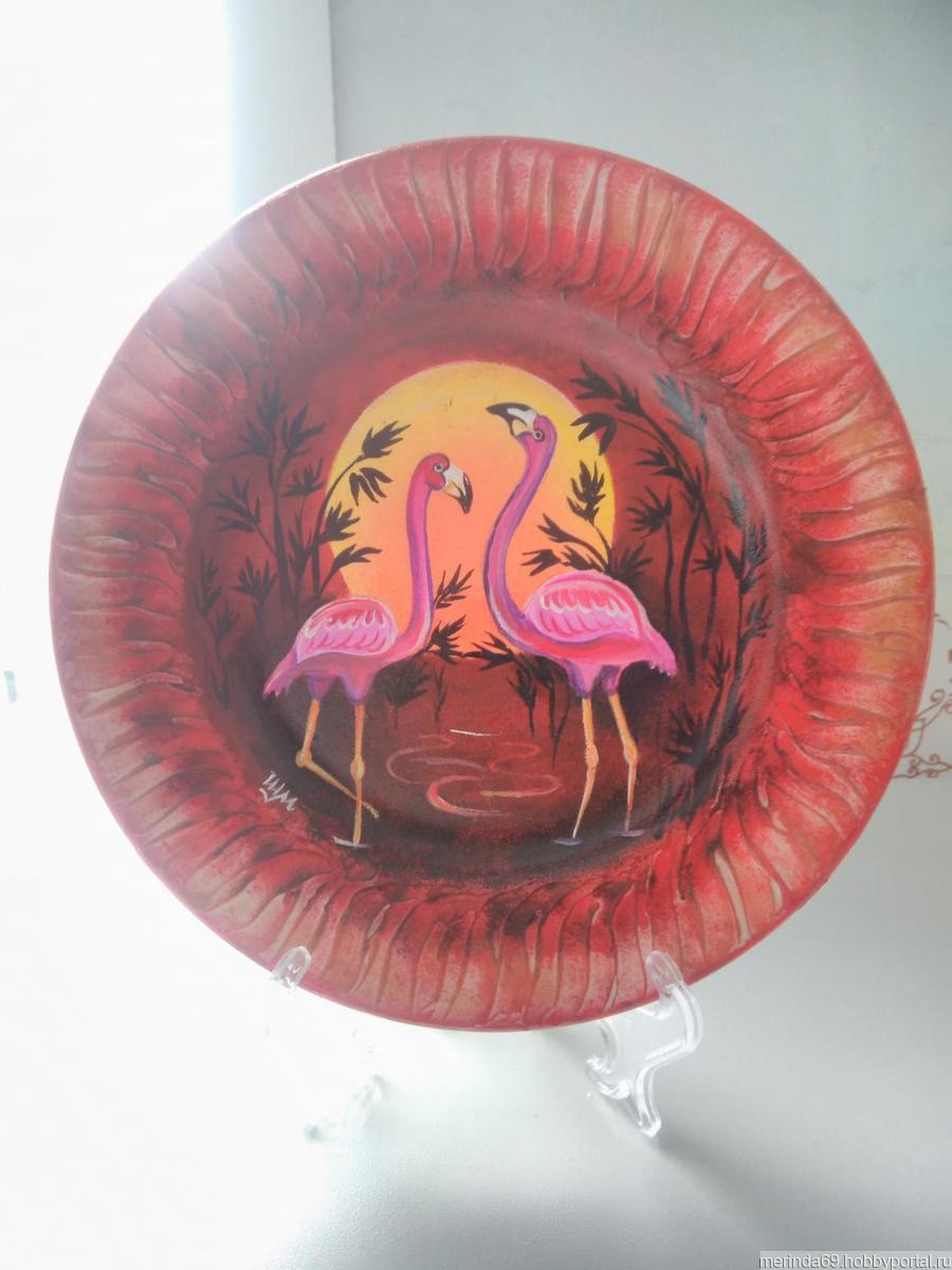 Декоративная тарелка   "Розовый фламинго" ручной работы на заказ