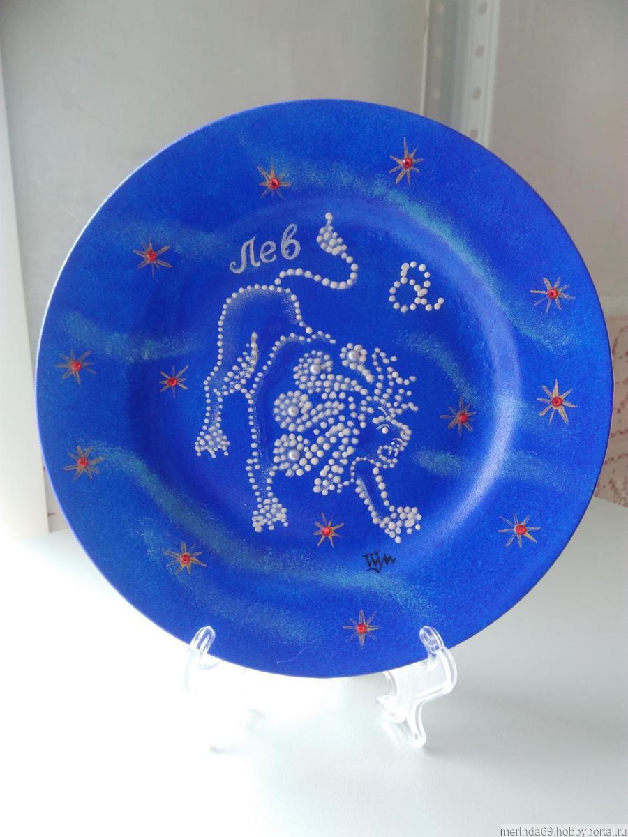 Декоративная тарелка "Зодиак Лев" ручной работы на заказ