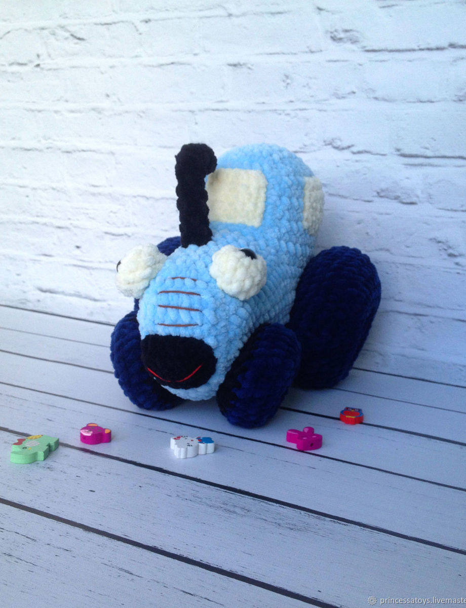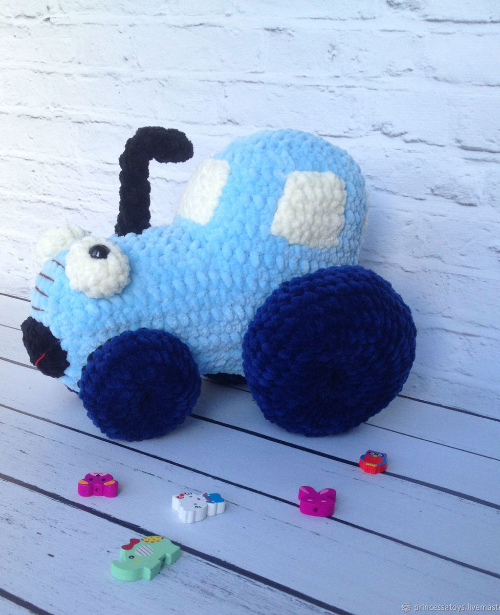 вязаная игрушка, ручная работа, синий, безопасные игрушки, трактор