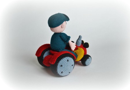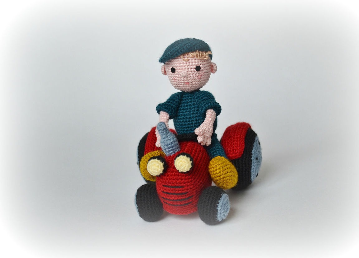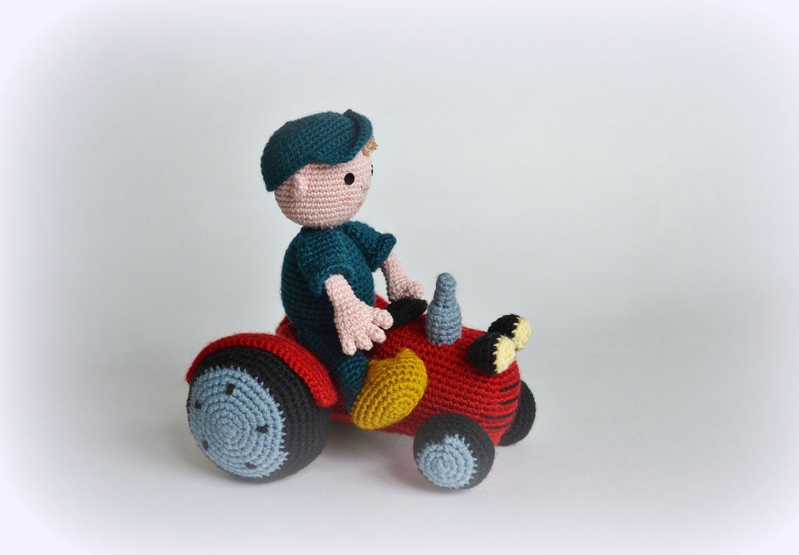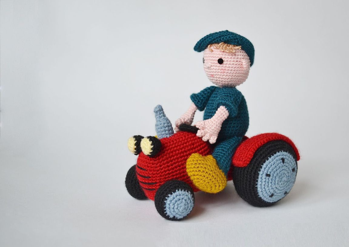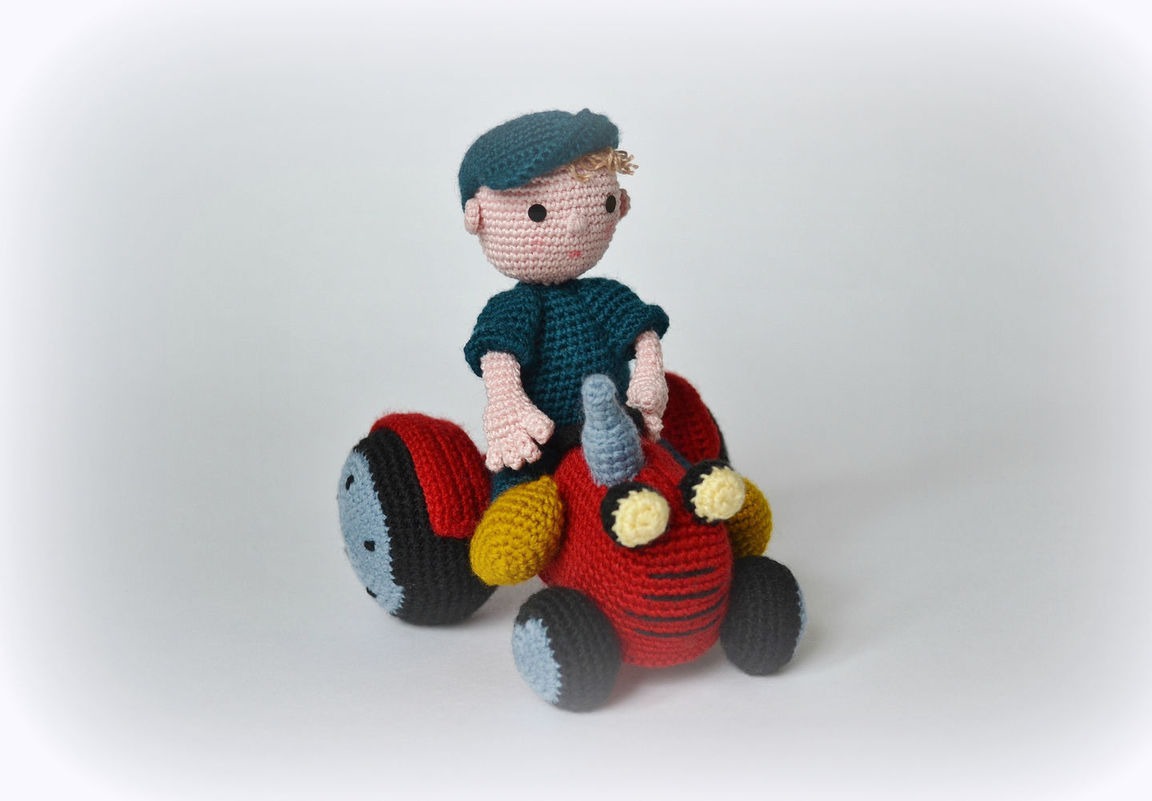 игрушка ручной работы, игрушка в подарок, трактор, трактор вязанный, трактор крючком, трактор и фермер, техника вязанная, трактор для мальчика