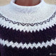 Пуловер вяжется из двух видов узоров, которые очень различаются по горизонтальной плотности. Основная часть связана узором буфы. Этот узор даёт ширину. Жаккард, наоборот, сужает полотно по ширине. Комбинирование этих узоров и придаёт кокетке круглую форму, позволяя вязать пуловер прямым полотном.