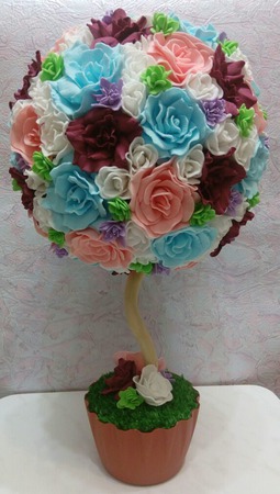 Топиарий из фоамирана, ручной работы. Высота 35 см, диаметр шара 19 см.