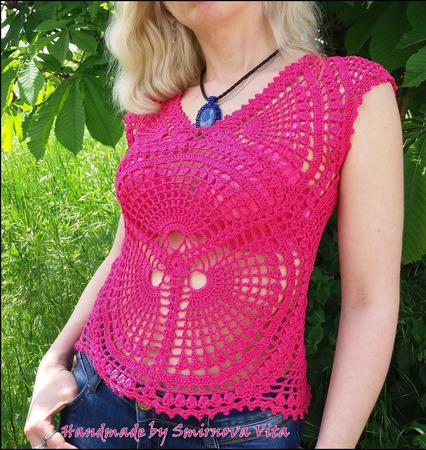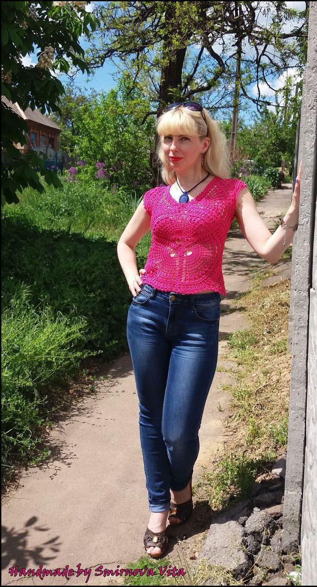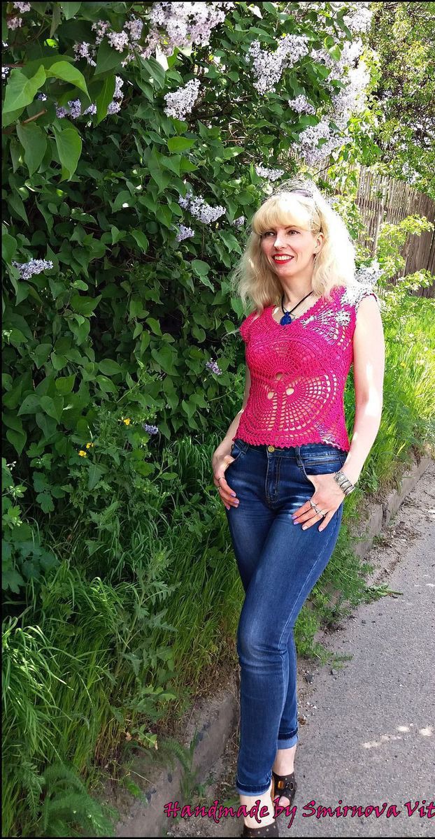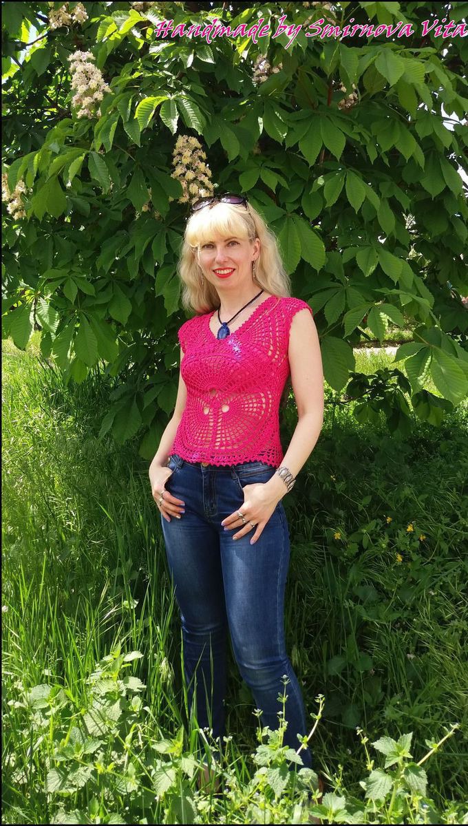 Яркий кружевной топ по авторскому эскизу в одном-единственном экземпляре из чистого хлопка! Причудливые раскаты вееров притягивают взгляды, вы не останетесь незамеченной!!!! Цена за размер 44