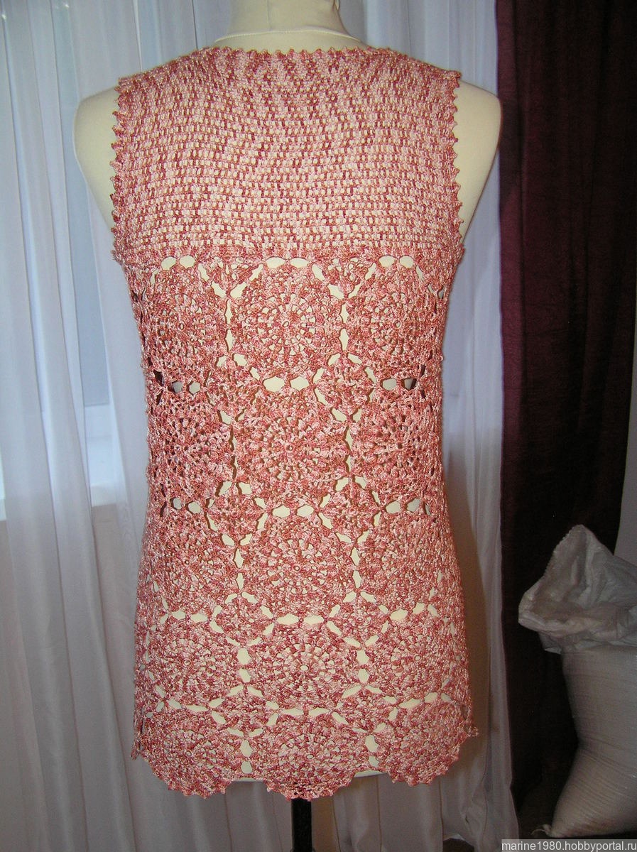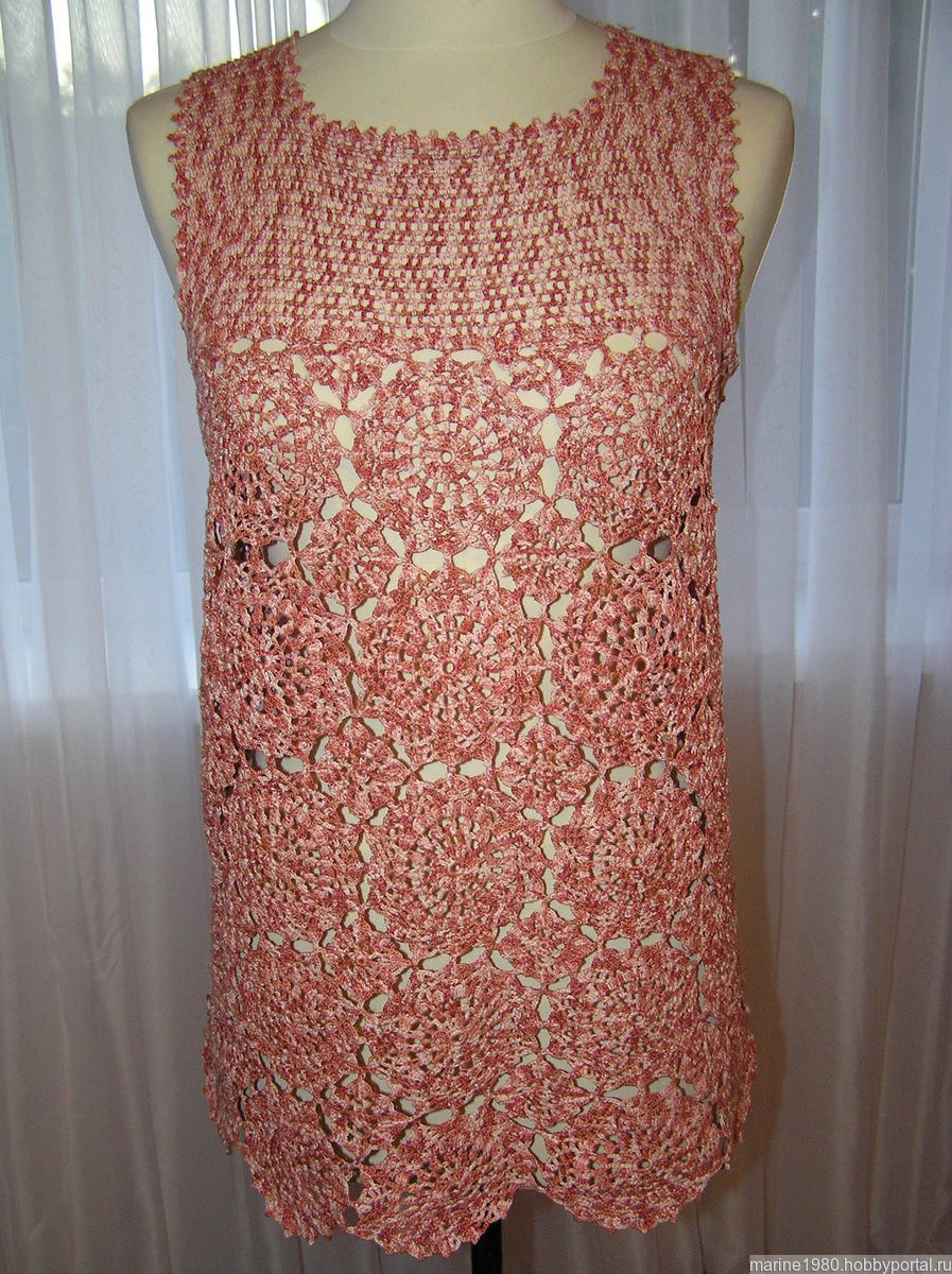 Летний топ связан крючком мотивами из 100% мерсеризованного импортного хлопка 260 м-50 гр