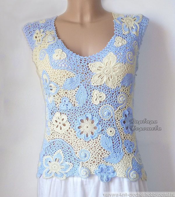 Нежный вязаный топ крючком в технике сцепного кружева. Топ был выполнен на заказ.