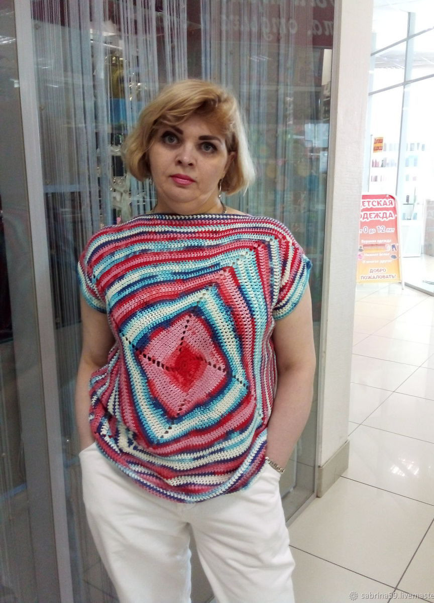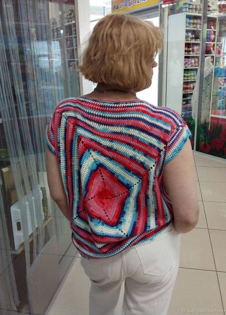 топ вязаный крючком, купить топ ручной работы, топ летний вязаный, топ яркий, топ разноцветный