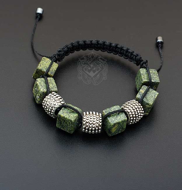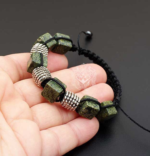 Отлично подойдет на размер запястья 17-18 см. Кубики змеевика 10 мм.