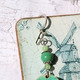 модный аксессуар, молодежный стиль, зелено коричневый, Брелок с декупажем, брелок ретро купить, брелок на сумочку, маячок на пояс, брелок с винтажным стеклом, мятно-серебристый, мятный брелок