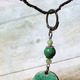 Деревянная основа с одной стороны декорирована в технике декупаж и залита тонированной эпоксидной смолой. С другой стороны дополнена винтажной серебристой подвеской из сплава и чешским стеклянным листиком. Сверху этого элемента расположена ретро-бусина (70е гг.) в окружении кальцитов. Брелок на кольце-карабине.
