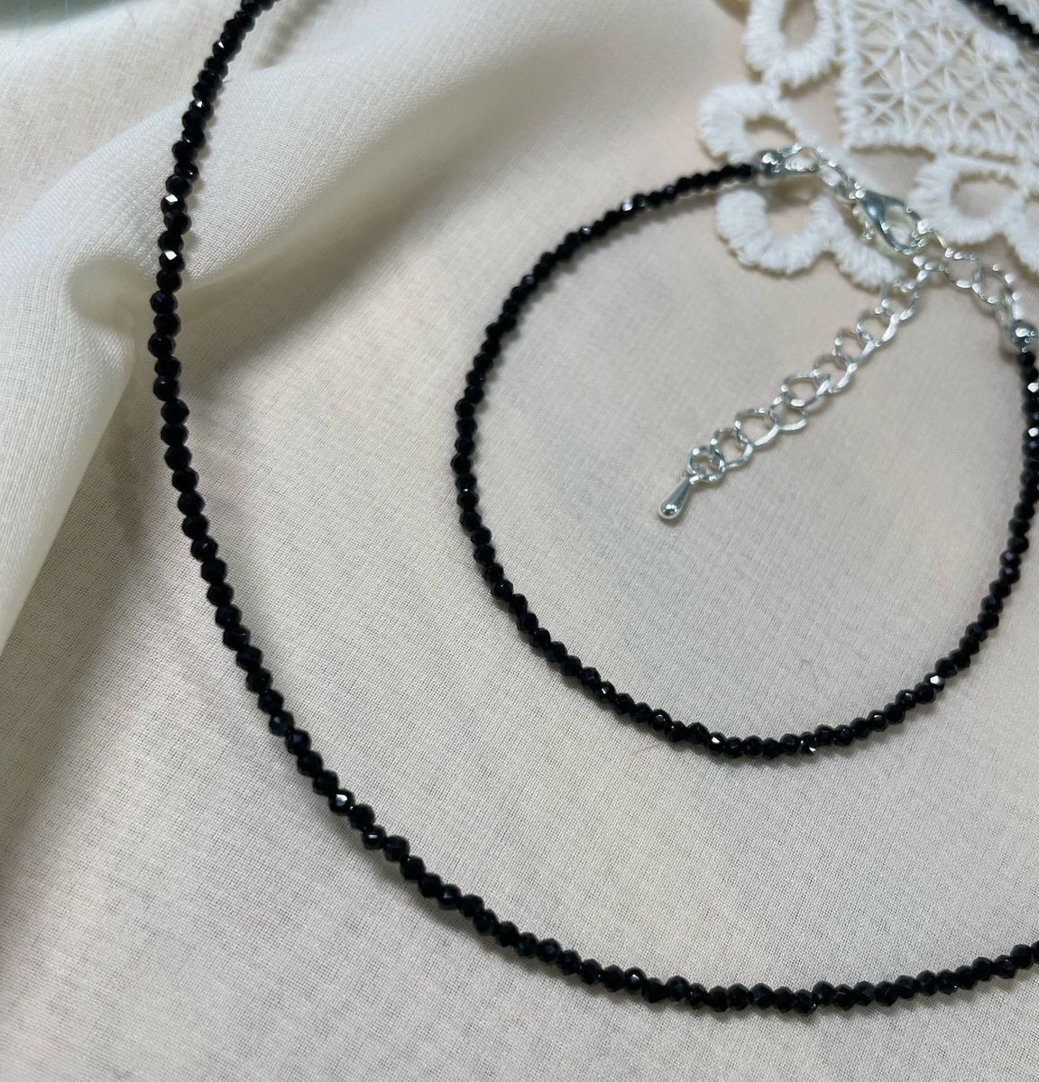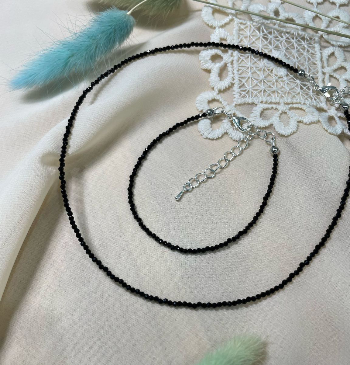 Классический чокер и браслет из черной шпинели.