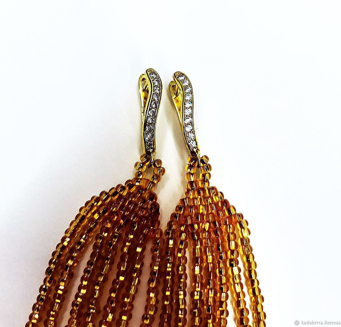 подарок девушке, подарок женщине, подарок подруге, серьги, серьги ручной работы, серьги длинные, серьги из бисера, золотые серьги, очень длинные серьги