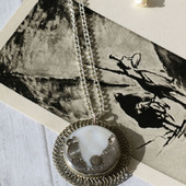 Кулон эпоксидный с сухоцветом и маркой винтаж «Японский сад. За окном»