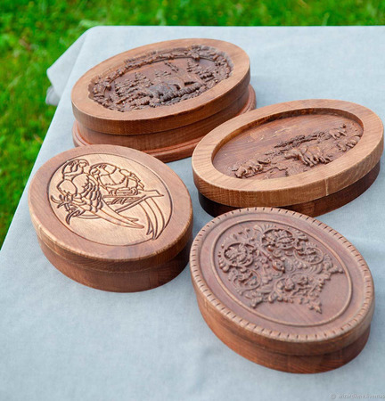 В наличии шкатулки "Медведи", "Африка", "Попугаи", "Узоры". Цена каждой- 3 500 рублей.
