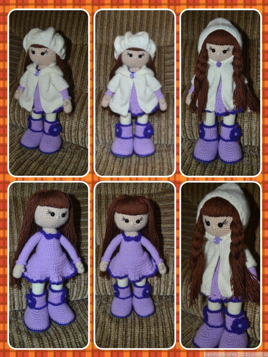 Милая куколка в фиолетово-белом наряде, станет отличным подарком доченьке или друзьям, а так же украсит ваш интерьер!!! Пальто и берет снимаются, волосы можно заплетать.Рост 27-30см, на заказ в течении недели)))