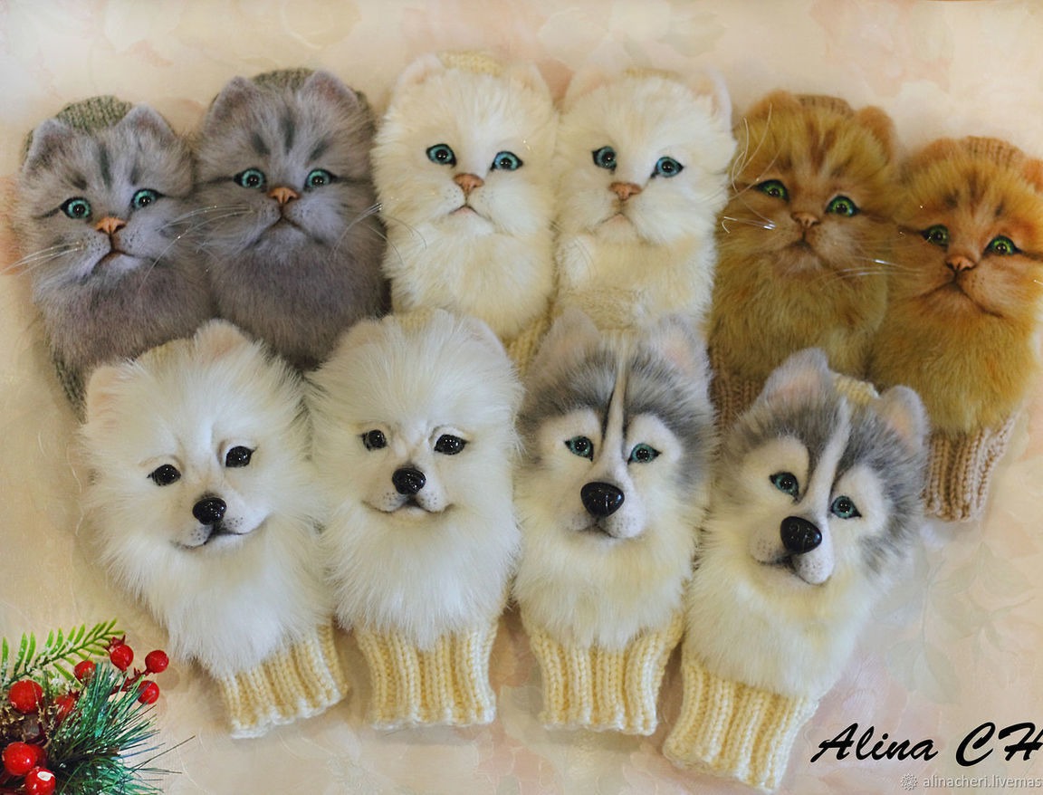 варежки ручной работы, красивые варежки, варежки с мехом, варежки-зверюшки, детские варежки, детские аксессуары, зимние варежки, варежки вязанные, звероварежки, котоварежки, варежки подарок, необычные варежки, варежки собачки
