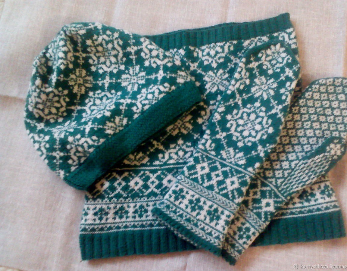 шапка, жаккард, снуд, аксессуары ручной работы, варежки вязаные, комбинированный, варежки ручной работы, комплект вязаный, зимняя мода, ручная вязка, ручная работа на заказ, норвежский узор, латышские варежки