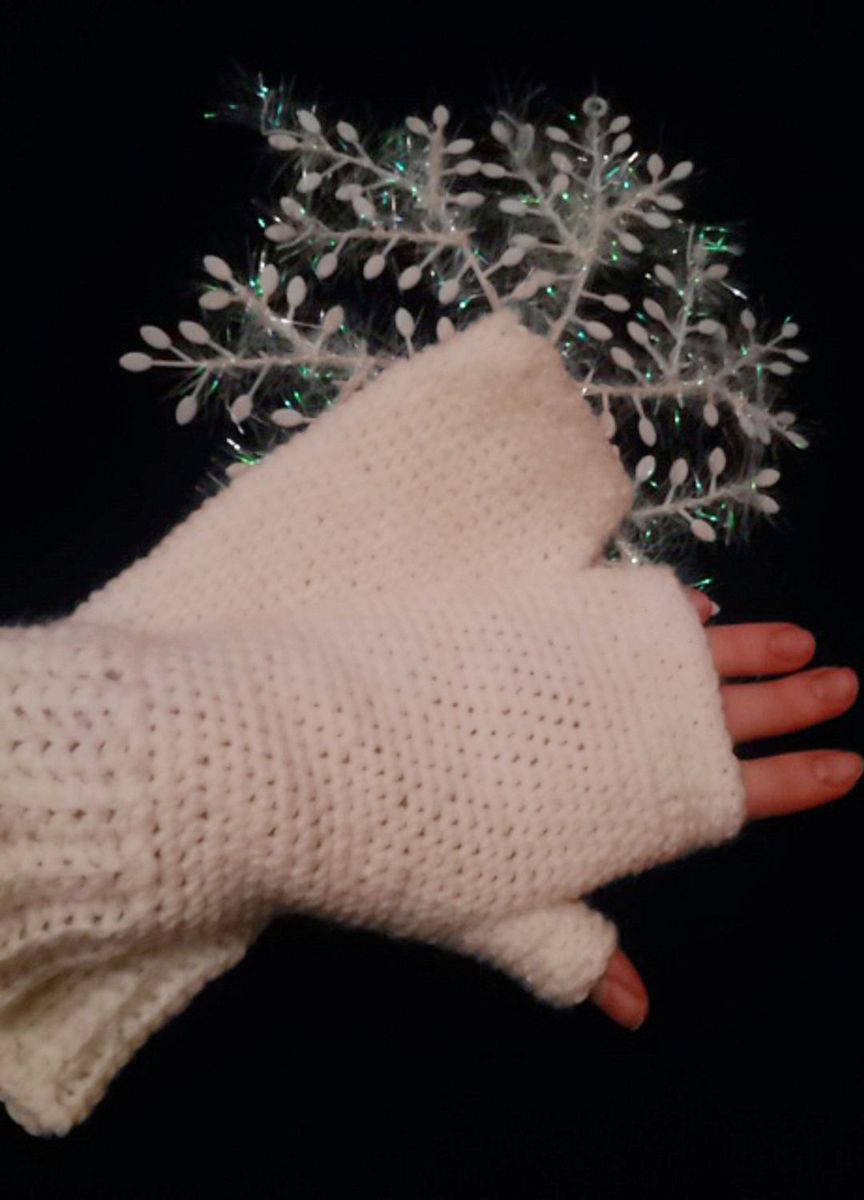 Митенка "Белоснежка" согреет вашу драгоценные ручки своим теплом. Связаны из 100% белой шерсти, очень приятные для кожи рук и не колются))) Отличный подарок вам и вашим родным на предстоящую зиму.