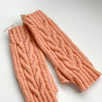 Мягкие теплые митенки связаны на спицах из акриловой пряжи с небольшим содержанием мохера.