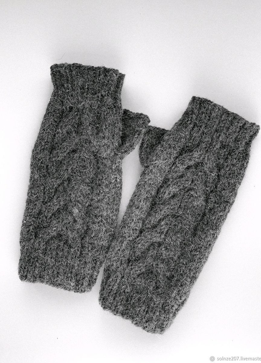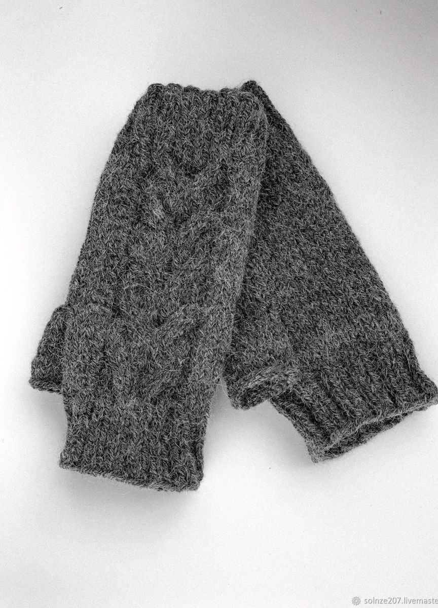 Митенки связаны из полушерстяной пряжи серого цвета.
