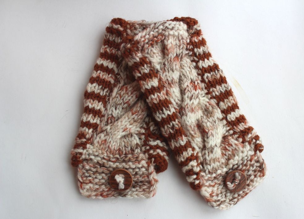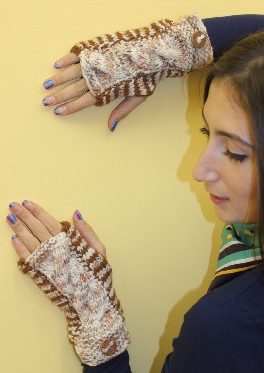 митенки, коричневый, вязание спицами, в полоску, аксессуары, митенки вязаные, митенки женские, митенки для девушки, митенки спицами, митенки теплые, митенки шерстяные, митенки универсальные