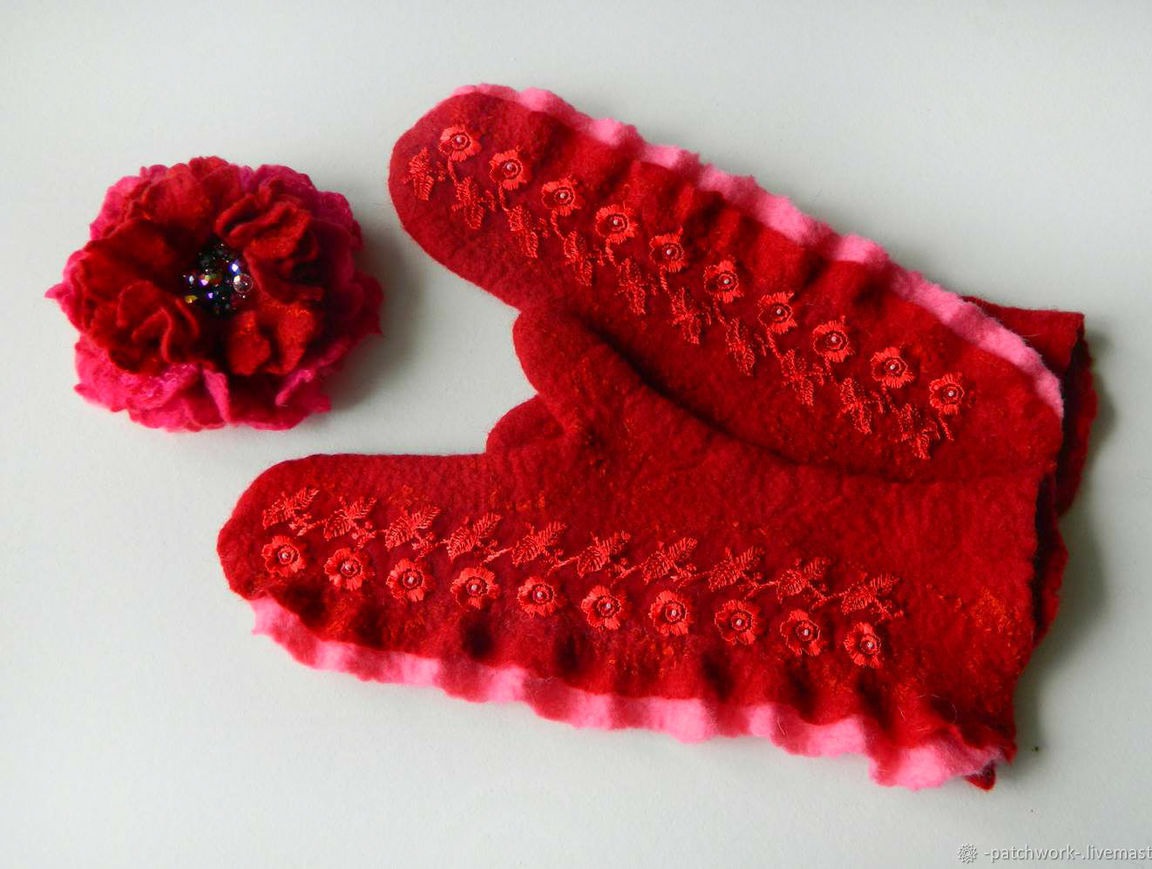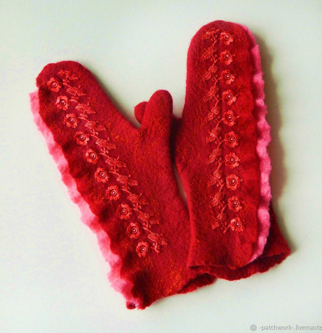 варежки женские, варежки теплые, варежки в подарок, варежки ручной работы, валяные варежки, купить варежки, красные варежки, варежки для девушки
