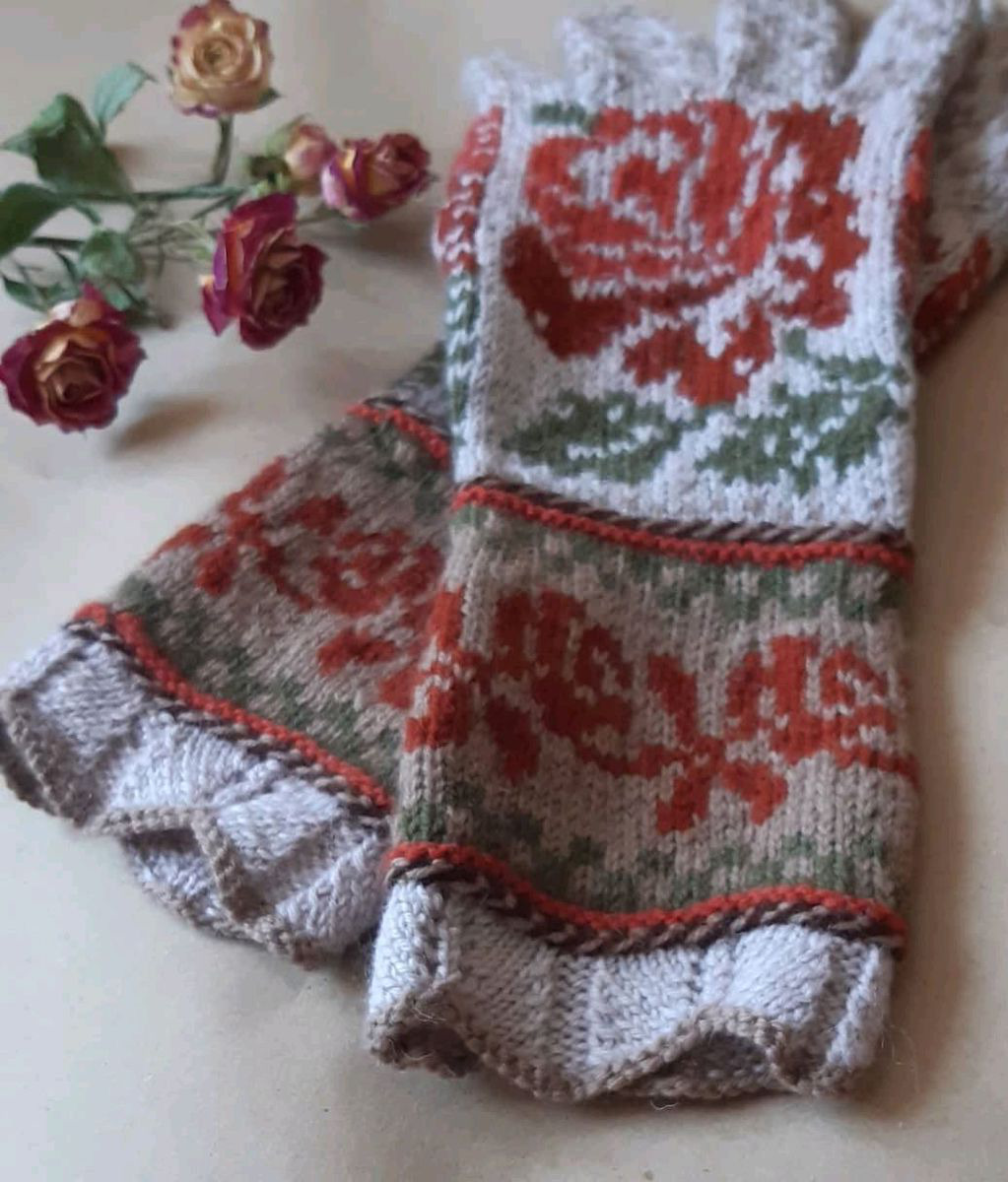 Перчатки женские связаны спицами из тонкой мериносовой шерсти, авторская работа в творческом тандеме с клиенткой, которой нужны были розы, а Вы можете выбрать и заказать, что хотите.