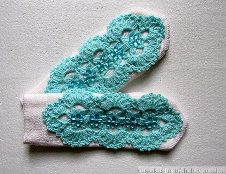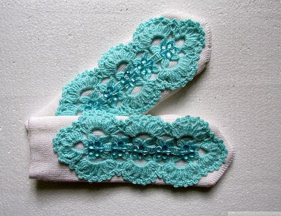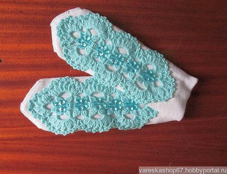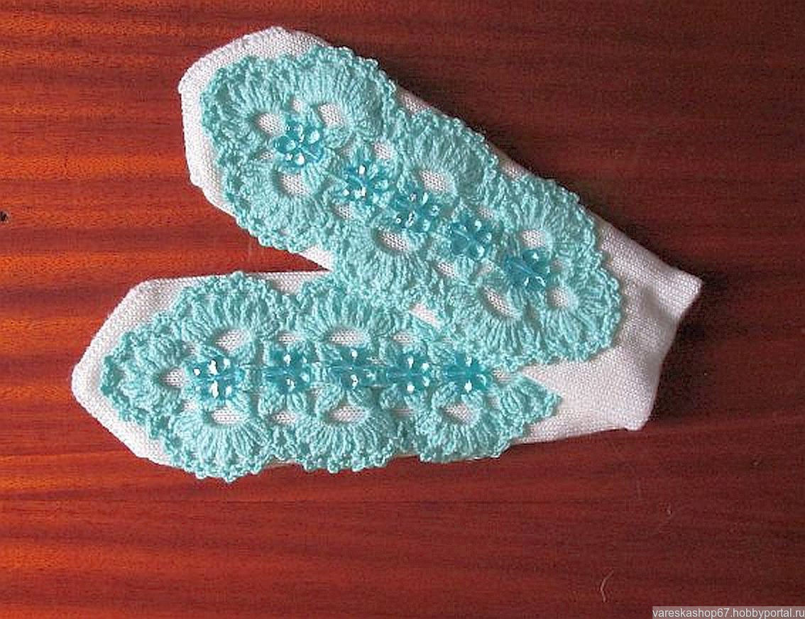 Варежки двойные машинной вязки. Украшены кружевным мотивом, связанным крючком с бусинами. Великолепный зимний кружевной узор. Оденьте свои руки такой красотой! Порадуйте себя и любимых!