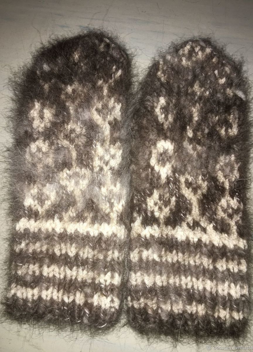 Очень теплые варежки из пуха Северной собаки - Якутской лайки. Пух очень теплый, жаркий, легкий, не воняет псиной. Варежки не протираются, только спустя три - четыре года, а то и пять лет. Руки в них на улице мокрые. Пух собаки обладает лечебными свойствами. Варежки не растягиваются. Прядение пуха сделано в ручную, вязаны на спицах. С красивым жаккардовым узором. Это отличный подарок женам, мамам и бабушкам. Ведь нет ничего лучше заботы о ближних.