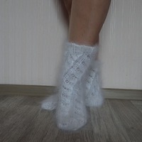 Связаны из пряжи козьего пуха на пяти спицах (без шва). Вывязан орнамент ручной вязки, созданы с большой любовью .Теплые, уютные, удобные, пушистые ,согреют в холода и защитят от морозов и стужи.