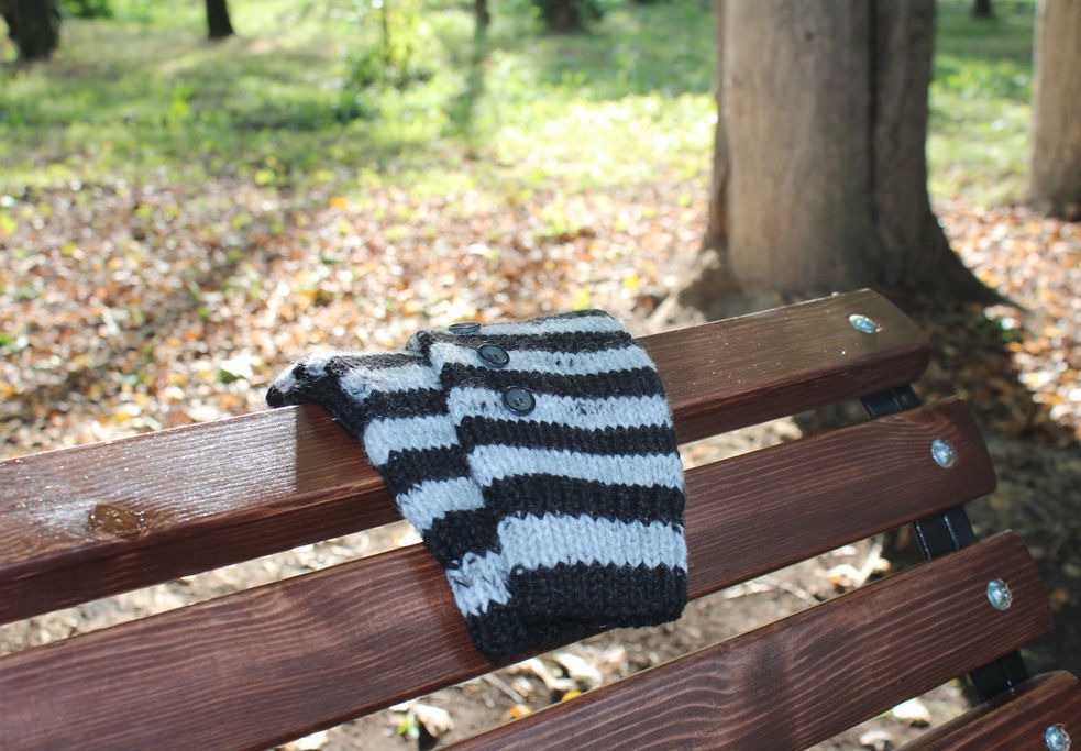 Варежки двухцветные полосатые, прекрасно впишутся в городской стиль. Объемные и теплые рукавицы связаны из мягкой пряжи.