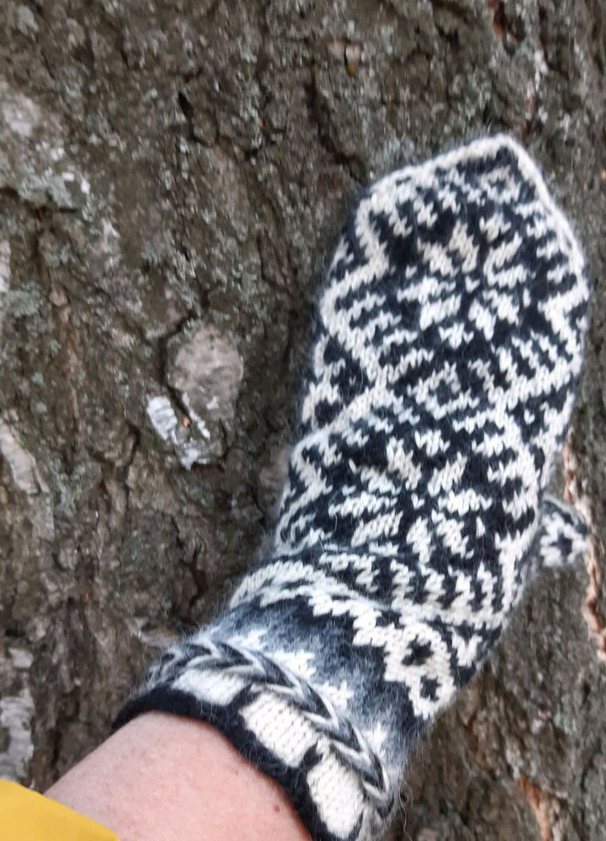 Варежки связаны спицами из шерстяной пряжи (50% альпака, 50% мериносовая шерсть) в технике жаккард, в работе использованы традиционные орнаменты.