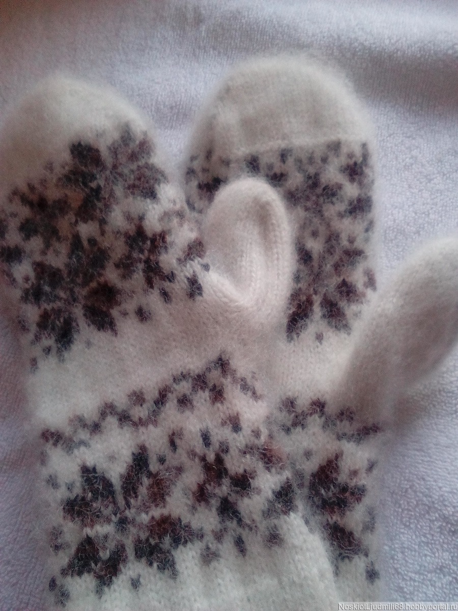 Варежки женские из натуральной пряжи ангорка связаны в две нити