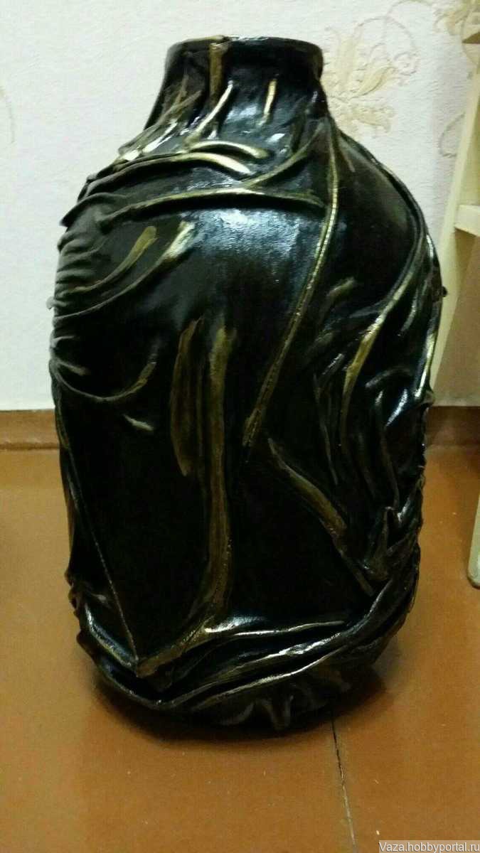 Ваза напольная. Из стеклянной бутыли, отделана кожей натуральной-крек.