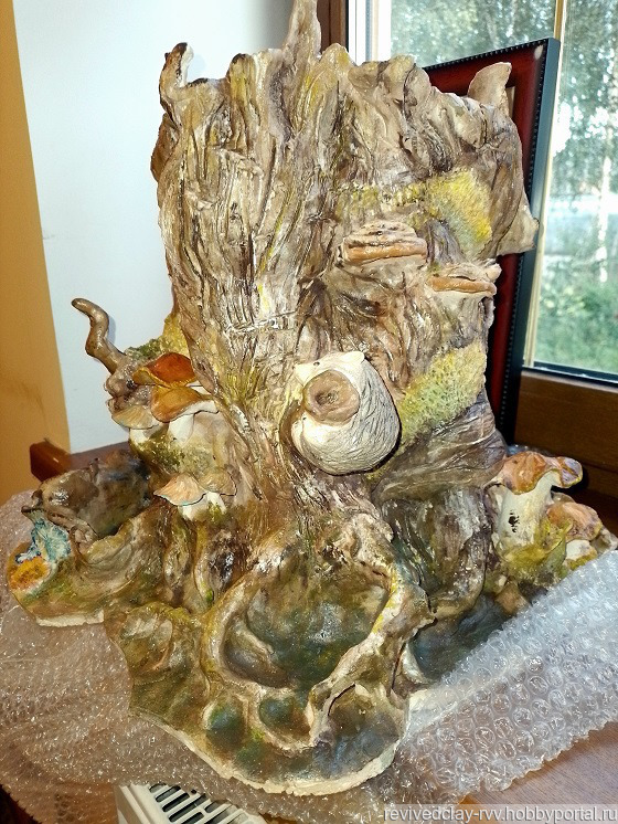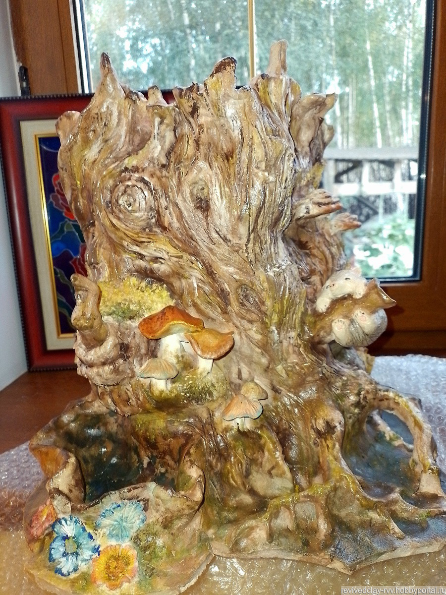 Сосуд для посадки цветов, хорошо впишется в дачный интерьер. Единичный экземпляр, сделанный из шамотной глины, с многочисленными деталями, которые помогают создать имитацию "живого" дерева.