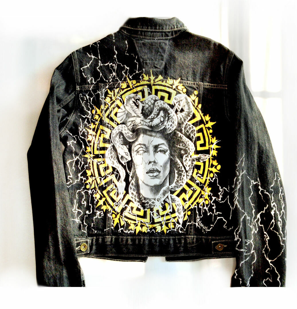 Стильная джинсовка с принтом ручной росписью сделает неповторимым образ и не оставит вас незамеченным в толпе Выделяющаяся, привлекающая внимание, шокирующая